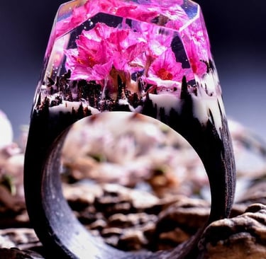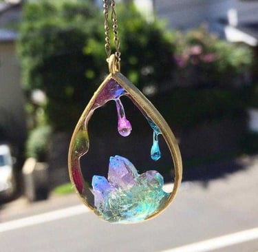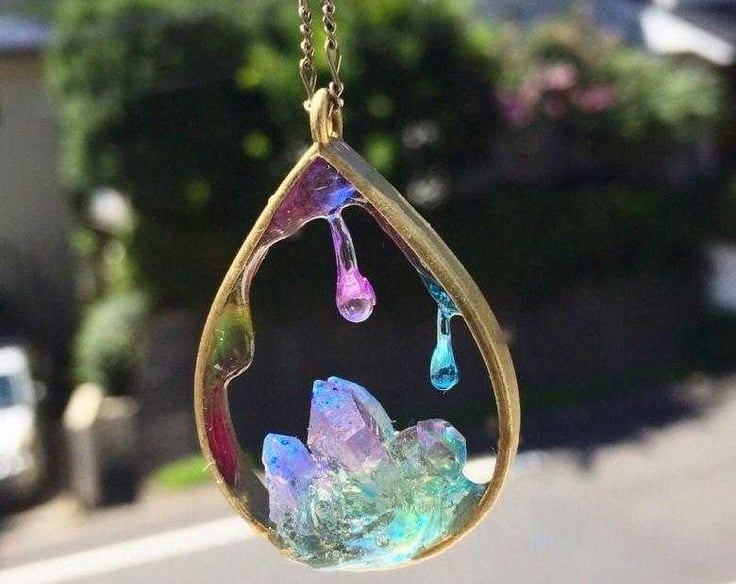 Resina + cristales naturales o cuarzos (joyería con mística).